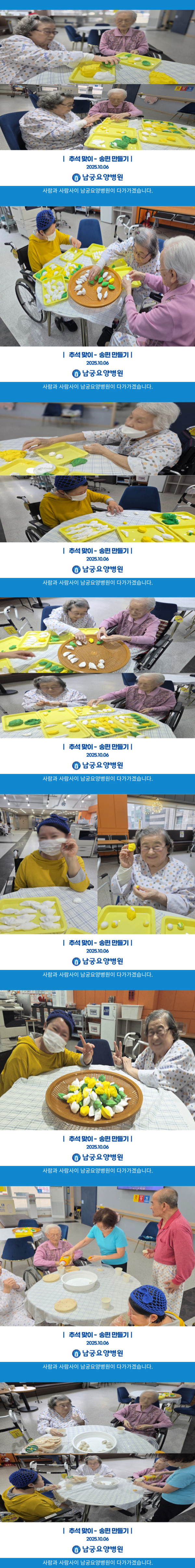 남궁요양병원은 앞으로도 어르신들의 행복한 병원 생활과 정서적 안정을 위해 다양한 문화·체험 프로그램을 꾸준히 운영해 나가겠습니다.