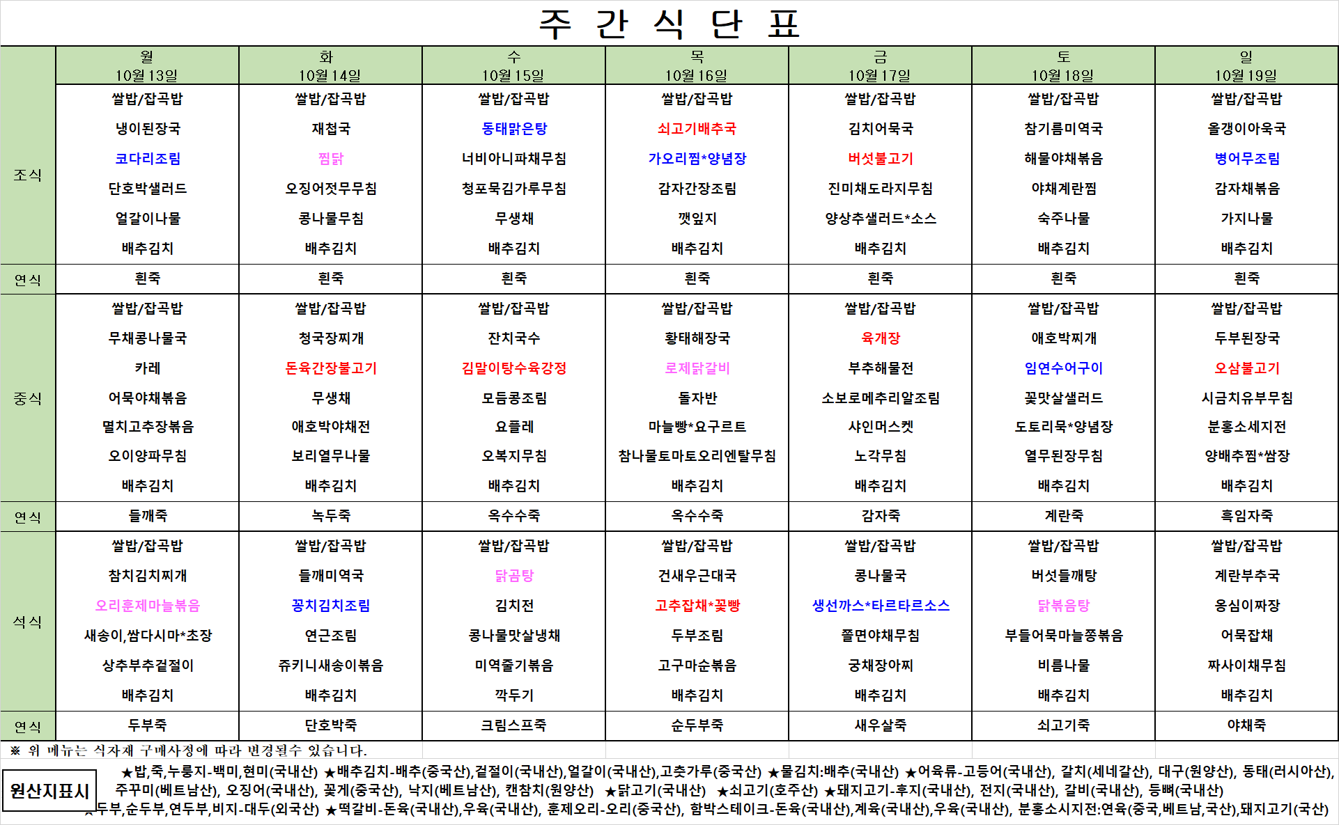 홈 > 커뮤니티 > 주간식단표 > 주간식단표