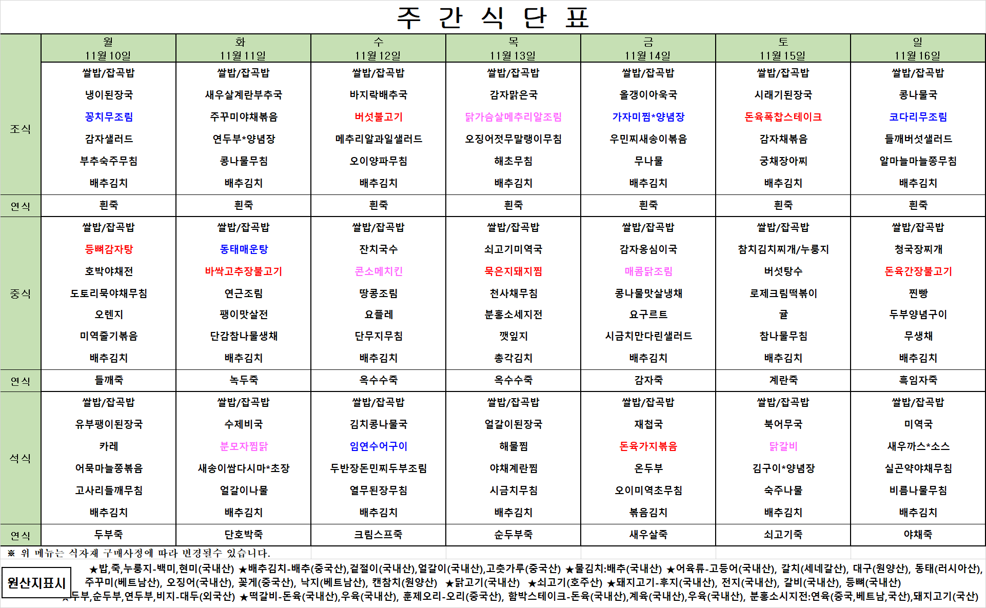 홈 > 커뮤니티 > 주간식단표 > 주간식단표