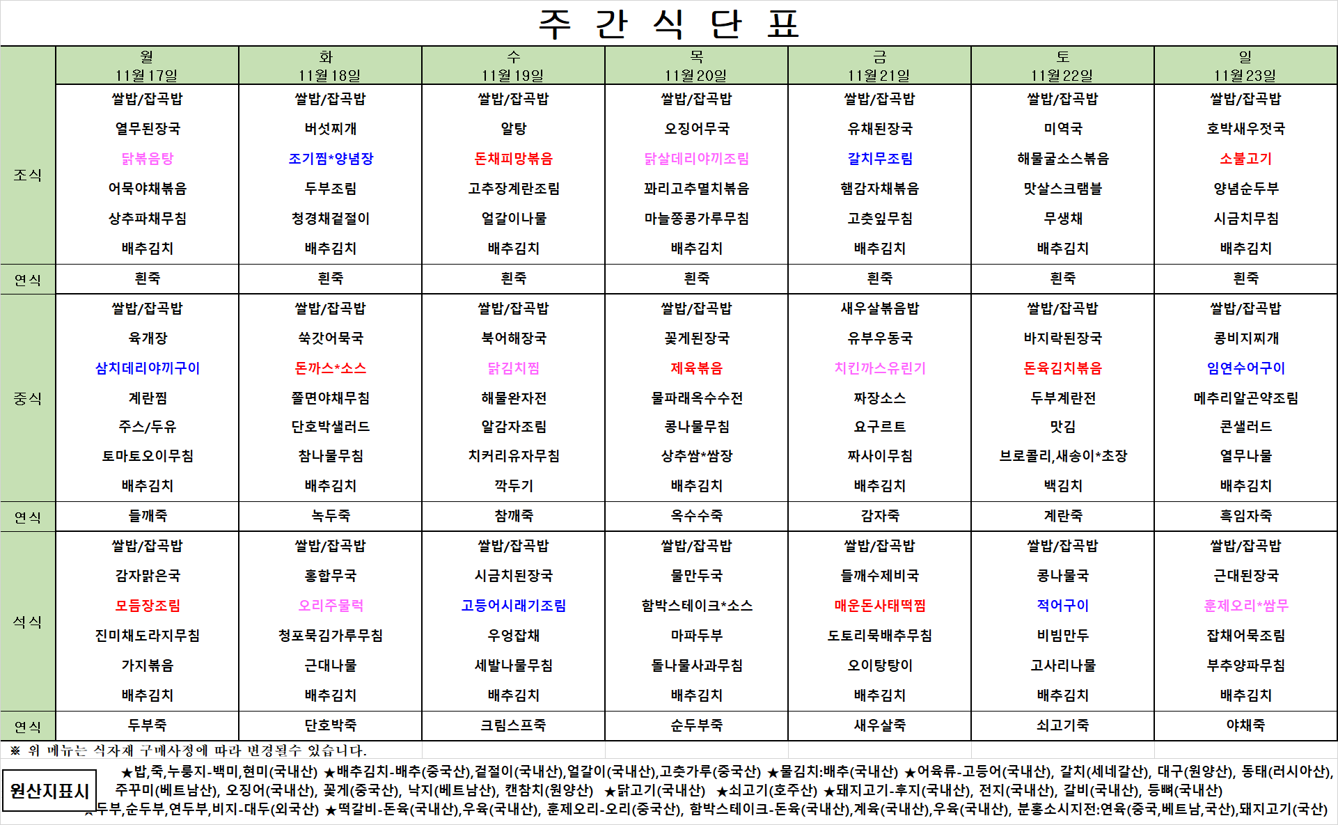 홈 > 커뮤니티 > 주간식단표 > 주간식단표