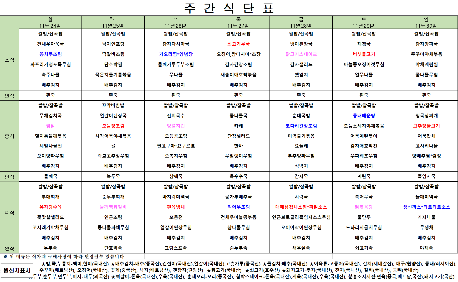 홈 > 커뮤니티 > 주간식단표 > 주간식단표