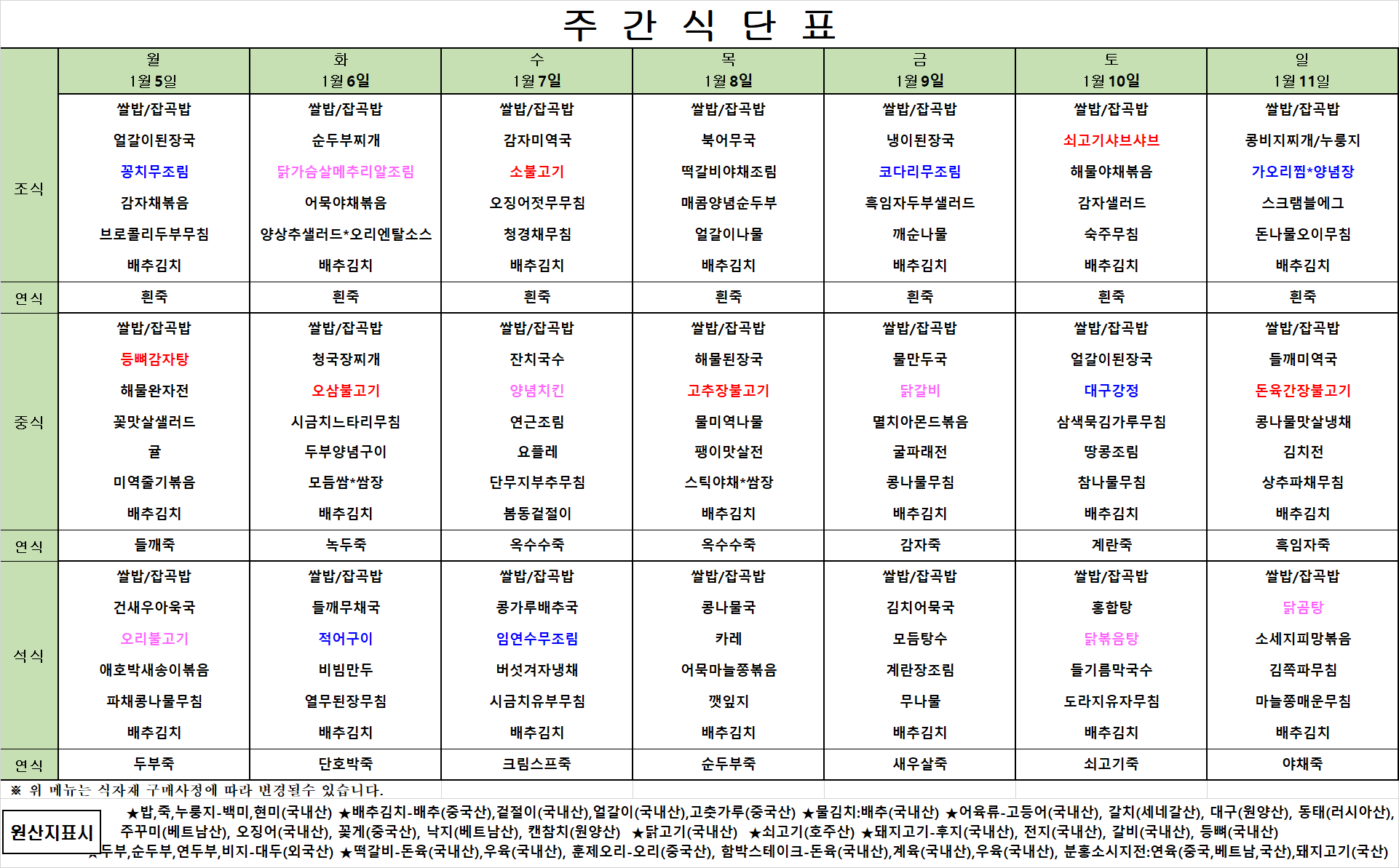 홈 > 커뮤니티 > 주간식단표 > 주간식단표