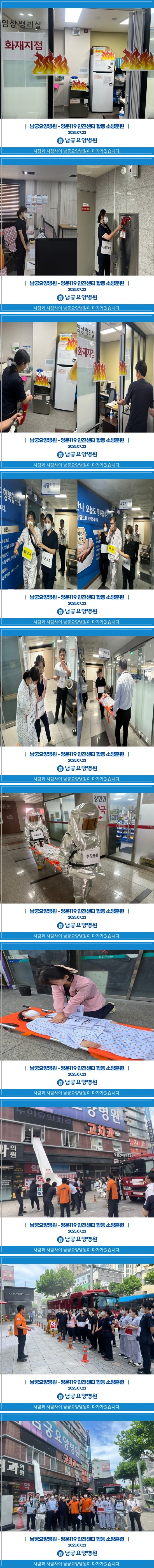 남궁요양병원은 2025년 7월 23일, 영운119안전센터와 함께 병원 내 화재 발생 상황을 가정한 합동 소방훈련을 진행했습니다.